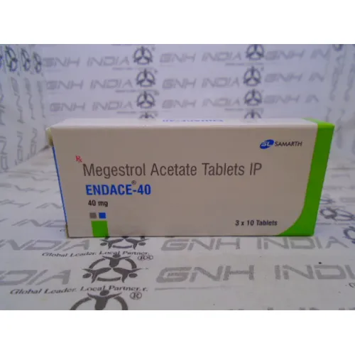 Endace -40 (Megestrol Acetate IP 40mg) is a progestin-based tablet used for appetite stimulation and weight management. This 30-tablet pack is commonly prescribed to address nutritional deficiencies and improve caloric intake in chronic conditions. Store between 15-25°C for stability.