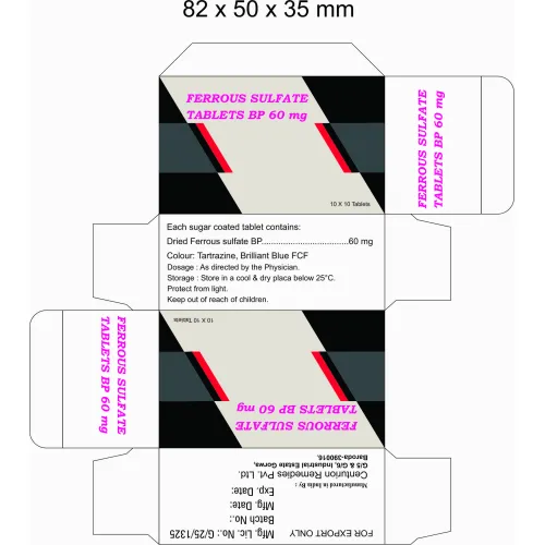 Ferrous 60mg tablets provide supplemental iron as ferrous sulfate BP, supporting red blood cell production and oxygen transport. A convenient 60mg strength option for daily iron needs. Suitable for iron deficiency support when diet alone is insufficient.