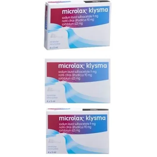 Microlax Klysma is a laxative enema used for short-term relief of occasional constipation. This 4-pack of 5ml micro-enemas contains sodium lauryl sulfoacetate, sodium citrate, and sorbitol. Ideal for gentle bowel evacuation when dietary changes aren't enough. Fast-acting formula for occasional use only.
