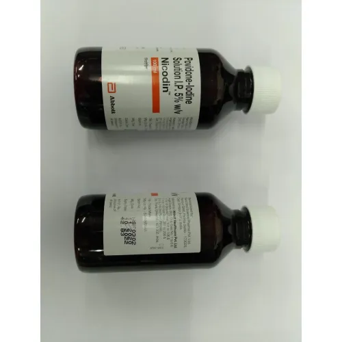 Nicodin 5% Povidone-Iodine Solution IP is a topical antiseptic solution used for wound care and skin disinfection. This 100ml pack provides broad-spectrum antimicrobial action for minor cuts, burns, and infections. Ideal for first aid and surgical site preparation in clinical and home settings.